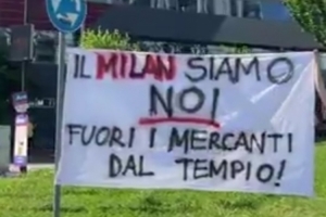 体育资讯5月19日讯 近日,AC米兰球迷在俱乐部外拉横幅抗议,不满球队本赛季的表现。 AC米兰球迷对俱乐部老板很不满意,他们的横幅上写道:米兰是属于我们的,外来的商人离开! 还有横幅写道:马尔蒂尼等于身份,埃利奥特走人!